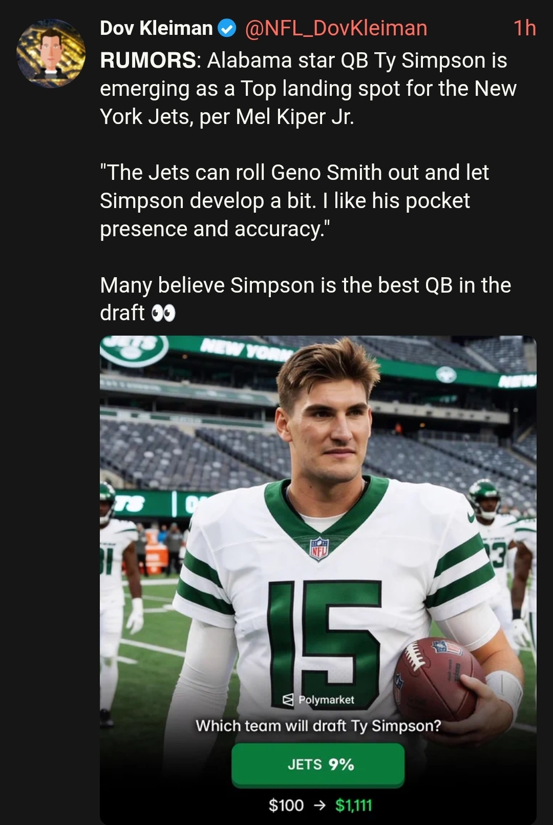 >>154221593Are the jets really going to fall for this 15 starts bs again? It would be stunning if they took instead of tanking for the really good ones next year. Even the cardinals know this.