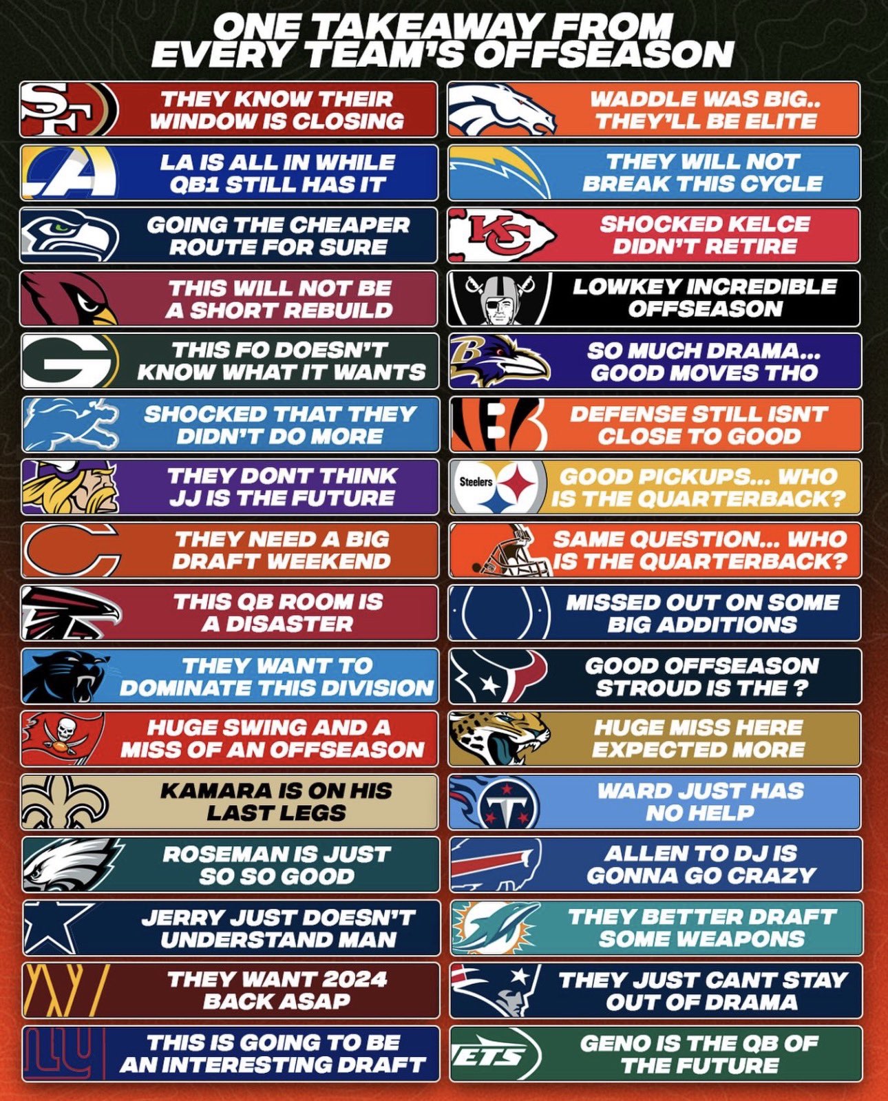 >>154222834what do they mean offseason, the draft didn't even happen yetwe aren't even at post June 1st trades