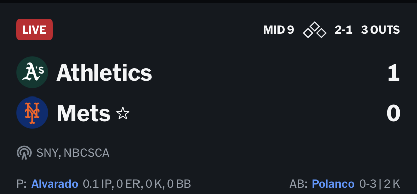 >mets getting shutout by the A’sFAGGets kek!!!