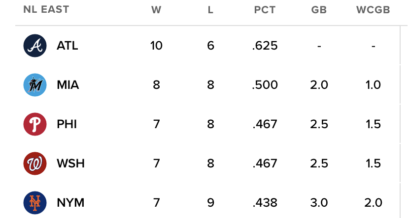 >braves are good>A's are good>Bucs are good>O's are good>no team has over 10 lossesFinally we have parity in a pro sports league