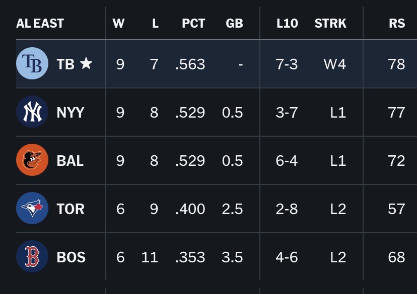 AL East looks like straight ass so far