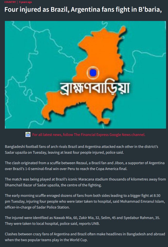 >>154241636Its every succesful team. I remember seeing news about field battles between Bangladeshi Brazil fans and Argentina fans. Ronaldo bangladeshi fans were probably genocided after 2022