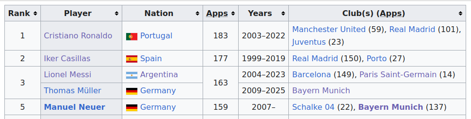 >>154241411Only Casillas has more games as a gk, but if we only count from 2003, Neuer is #1.Blame the bloated formats if you want.