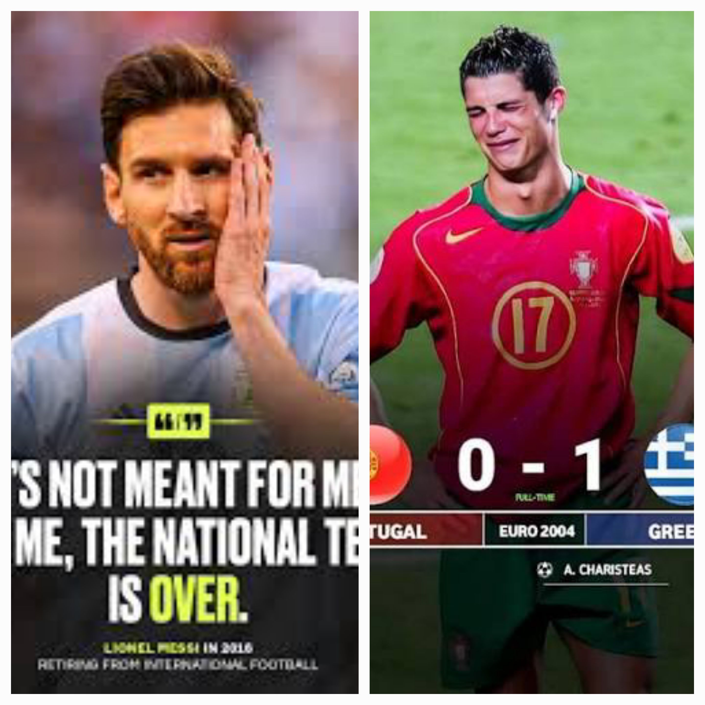 Messi didn’t drag his team to victory in>2010>2014>2018(Don’t look up how many knock out goals he scored there)Ronaldo didn’t drag his team to victory in>quite a few tournaments