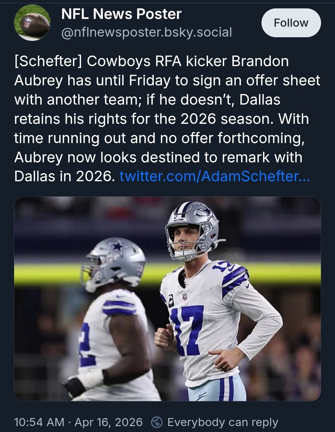 >>154243337They placed a 2nd round tender on him. No team is going to essentially trade a 2nd round pick for a kicker