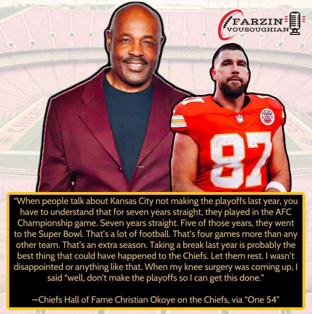 >>154244332despite what all the NFL shills and sports media talking heads tell you, the Chiefs Dynasty has been a disaster for the NFL. Pile on all the Gaylor Swift nonsense, and the Seahawks/ Patriots being probably the most uninteresting superbowl in 25+ years, people are just losing interest.For me its mostly the fact that modern QB play is beyond garbage, so every "Prime Time" game ends up being a slop fest. Why bother tuning in?