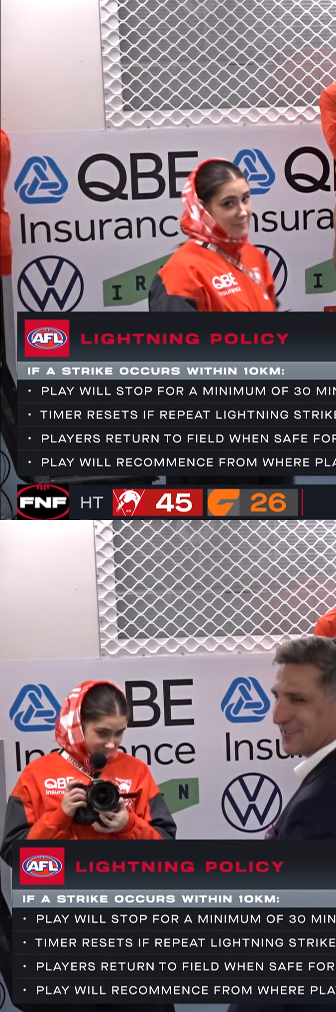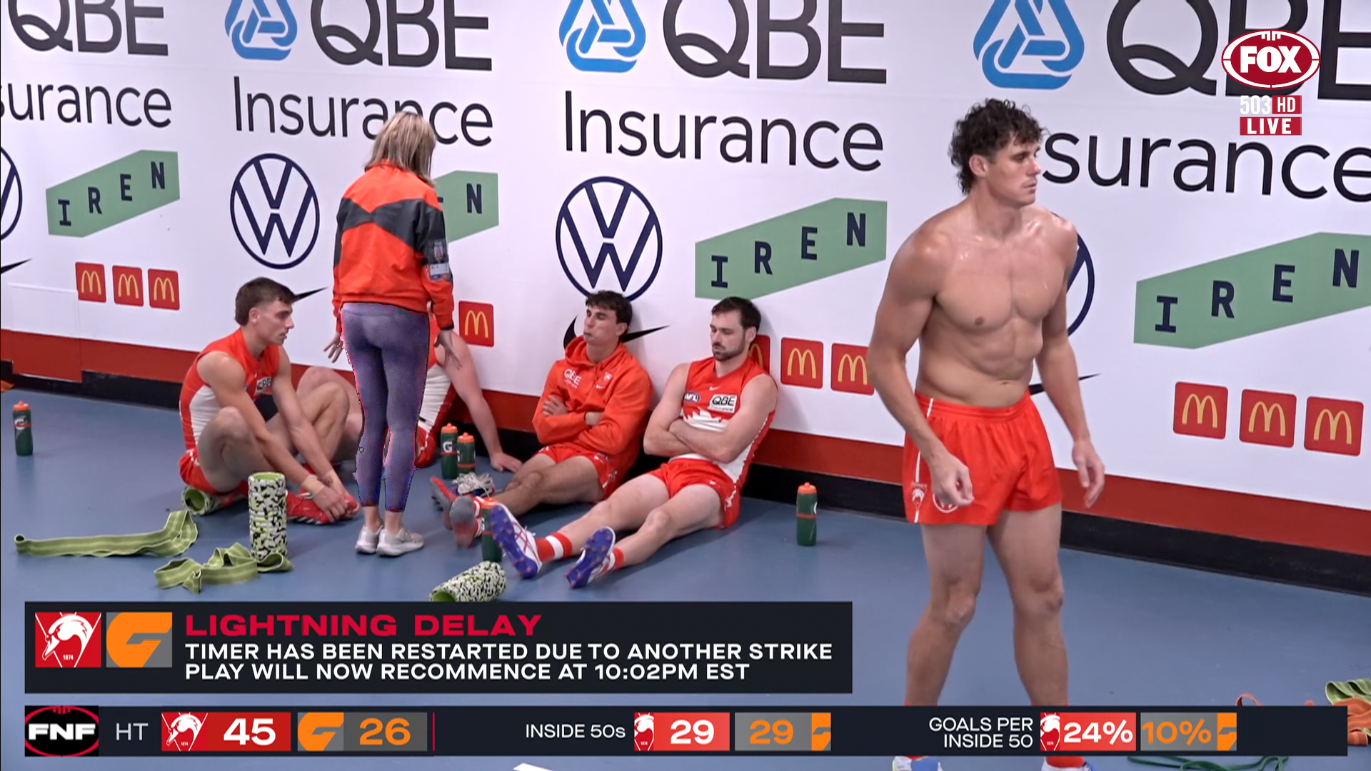 >Lightning in Sydney so +20 minutes break time