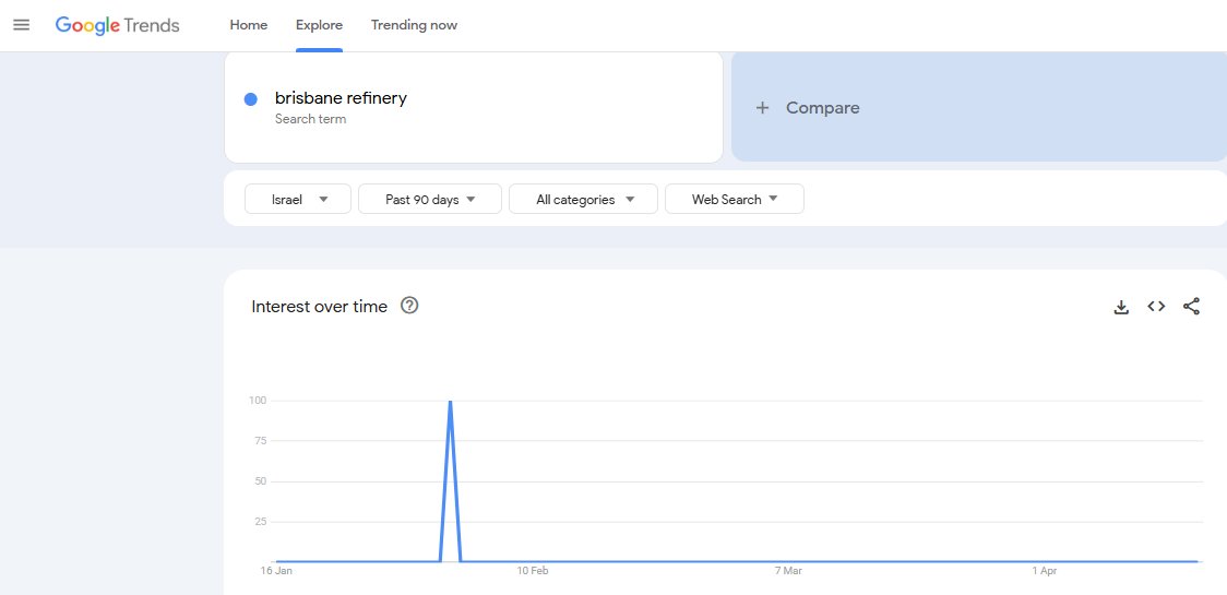 Why was there so many searches for 'Brisbane refinery' in Israel in February? Kinda strange.