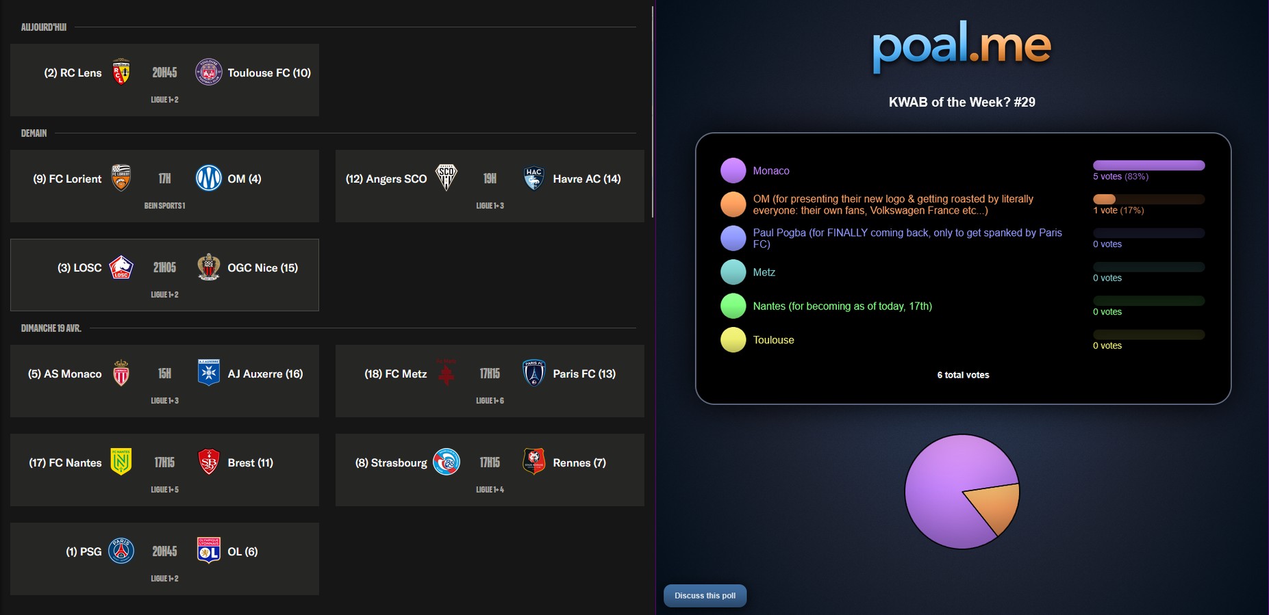 you have to be mentally ill to put psg in the kwab of the week. psg are still first with one game in hand, marseille lost to lorient and are now 6th, SIXTH.