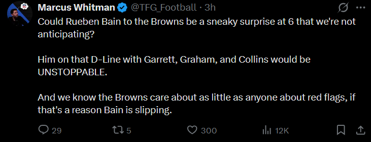 ctrl c'd and v'dsome thoughts on Lawrence to Cincy...<buckle up>Dexter Lawrence is a 28-year old studhe spent most of his career playing vs elite interior OLs of the Eagles & Cowboyshe's been double-teamed at the highest rate in the NFLhe's now playing in the AFC NorthRavens lost their CSteelers might start a 42-yr old QBBrowns have Deshaun or ShedeurLawrence should FEASTthe Giants were TERRIBLE when he wasn't on the fieldlast year, even in a "down" year for Lawrence:Giants defense with...Dexter Lawrence OFF the field:#32 YPA (8.4)#31 sack rate (4.1%)#27 EPA/pass (+0.13)#26 pass success (47%)#23 pressure rate (32%)Dexter Lawrence ON the field:#7 pass success (40%)#8 YPA (6.6)#9 sack rate (7.7%)#10 EPA/pass (+0.09)#22 pressure rate (33%)that was a "down" year for Dexterthe team was top-10 vs the pass when he was out therebottom-10 when he wasn'twant a larger sample?last 3 years:Dexter Lawrence OFF the field:#32 YPA (7.7)#31 pressure rate (29%)#31 pass success (48%)#30 EPA/pass (+0.14)#30 sack rate (5.5%)Dexter Lawrence ON the field:#8 pass success (42%)#8 sack rate (7.4%)#10 EPA/pass (+0.02)#13 YPA (7.0)#15 pressure rate (36%)and again, the context is VITAL:he was obviously the #1 best player on the Giants defenseevery team knew itthey double teamed him at the #1 highest rate and he STILL made this big of a differenceand that was despite playing some of the NFL's top offensive lines in the NFC East as it relates tot he Eagles and Cowboys for YEARShttps://x.com/SharpFootball/status/2045665534277005596