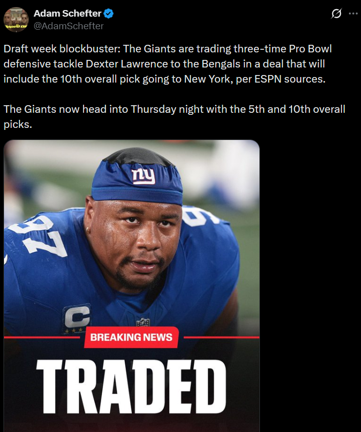 >the Cincinnati Bengals have backed out of their trade for Giants DT Dexter Lawrence