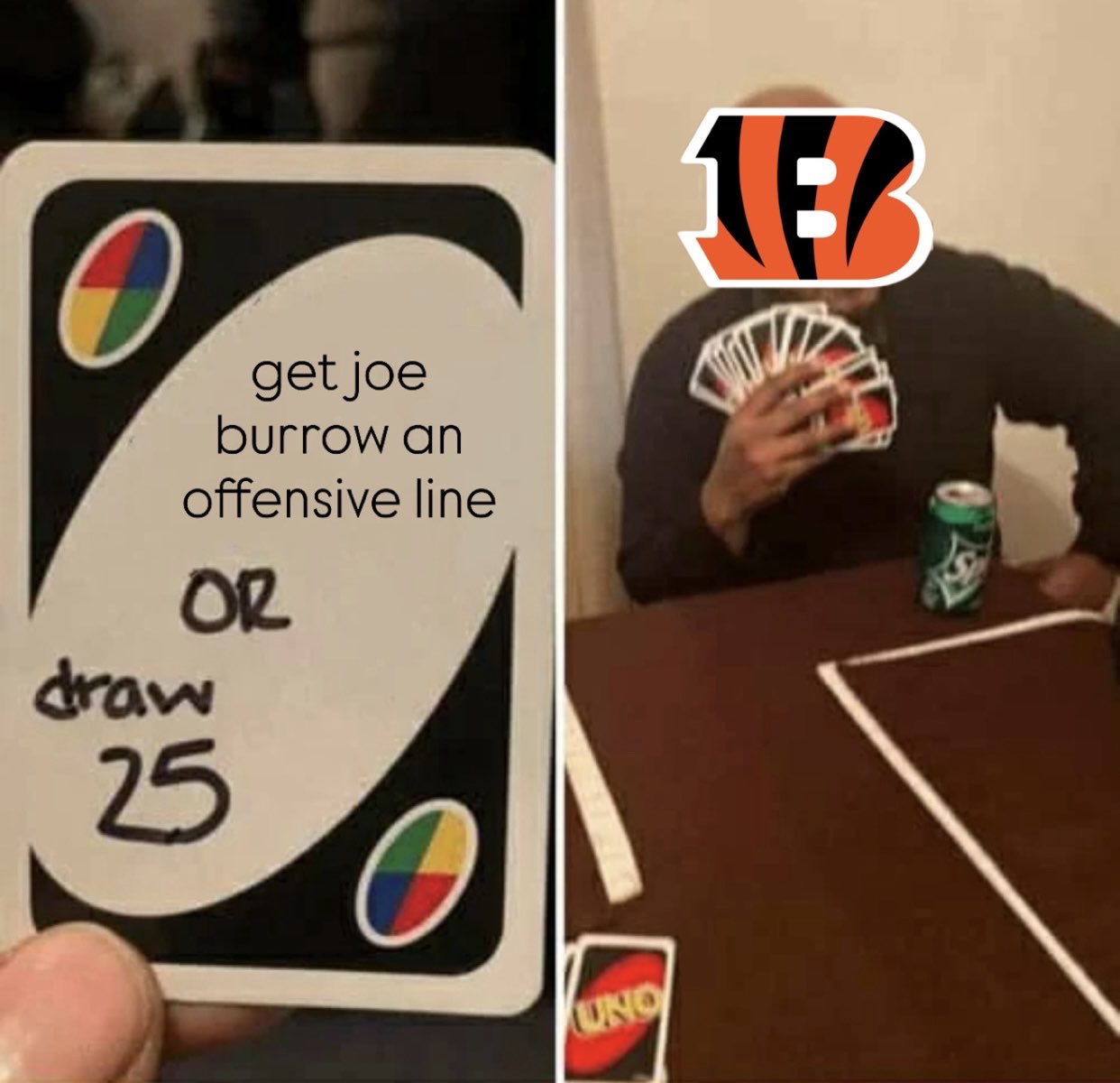 Look at all the picks the Bengals have used on defensive players in the last 10 drafts lel