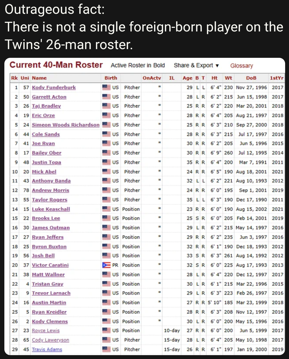 >>154272688Stearns moves have been consistently awful. He deserves to be shit canned more than Mendoza but I feel like you just clean house at that point.