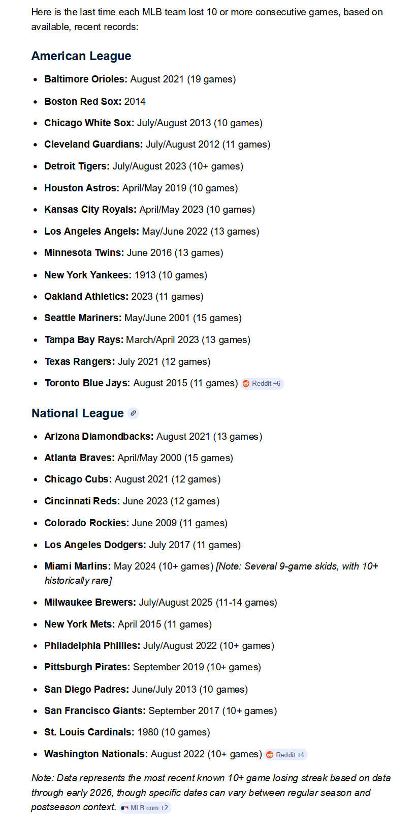 >>154272127well that list also has completely ridiculous errors like the infamous 2001 mariners team losing 15 in a row so it shouldn't have even been posted