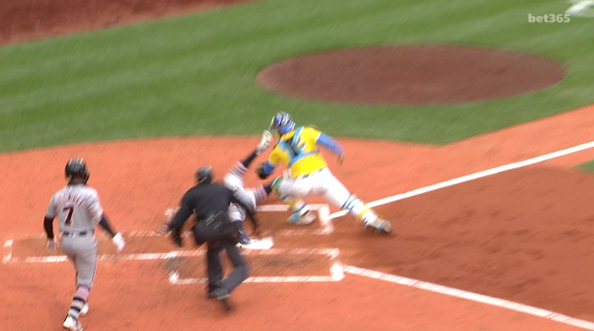 that was a nice throw by Bichette. let's go!