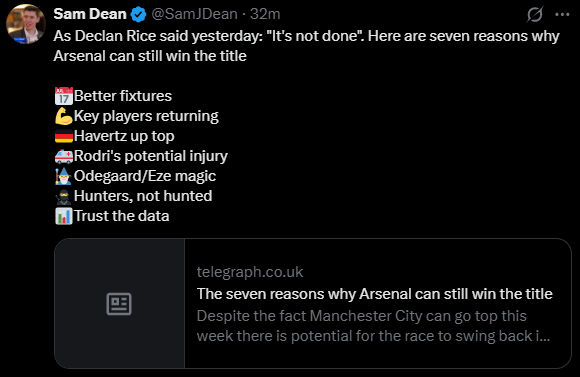 City won’t drop a single point in their remaining fixtures - Arsenal can easily drop points in ALL their remaining fixtures.