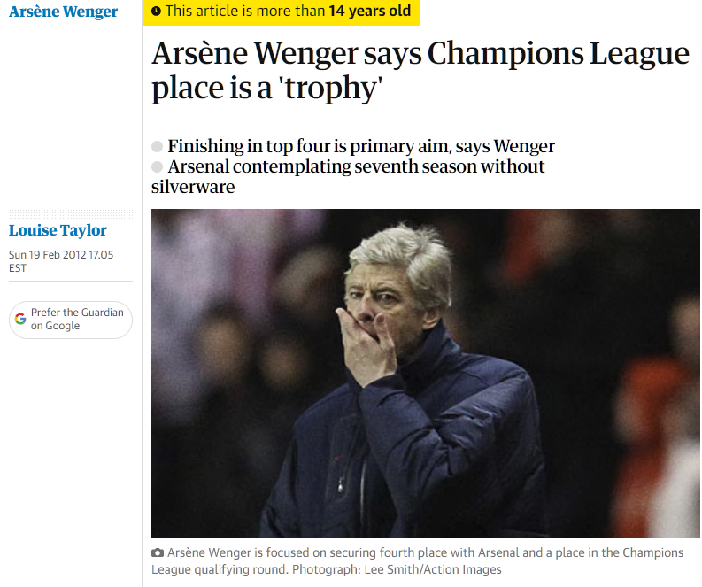 >>154307640Just accept their status as a CL qualifying English club, it's counts as a trophy.Wenger would've kept his job as Arsenal manager if he kept qualifying for the CL. This is the club's ambitions.