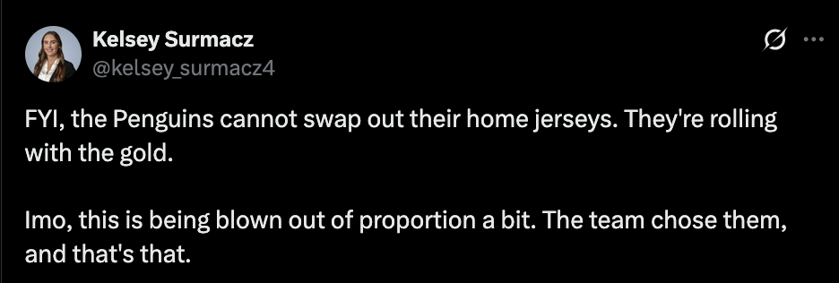 >Penguins wear their meme jersey