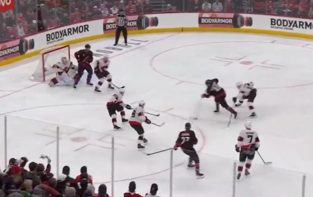 >Hughes slowing down and giving up the empty netter?????