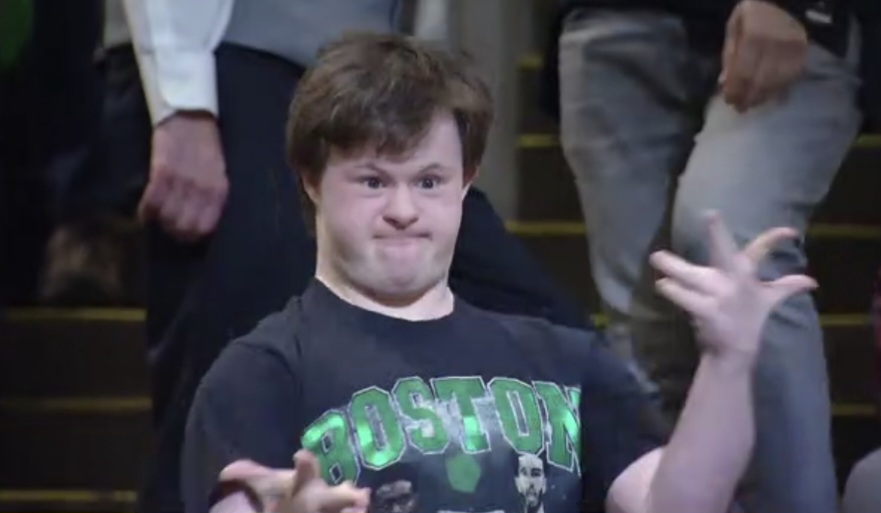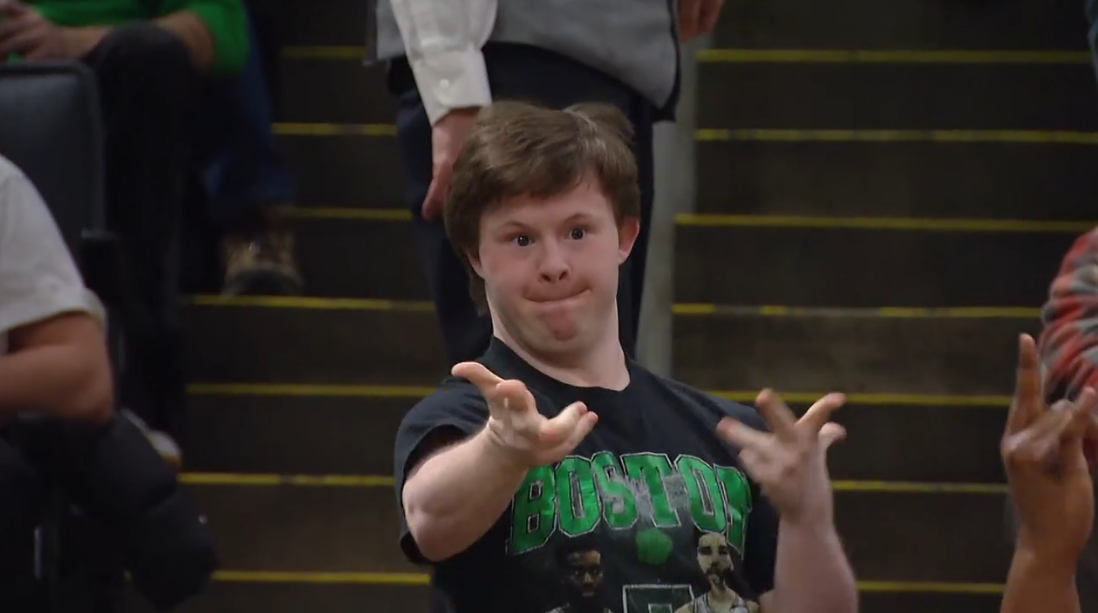 Jaylen Brown just flexed and screamed after getting his dunk blocked.