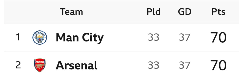 >>154328030>level on points, games won, draws, losses and goal differenceAnd yet we all know man city are way ahead