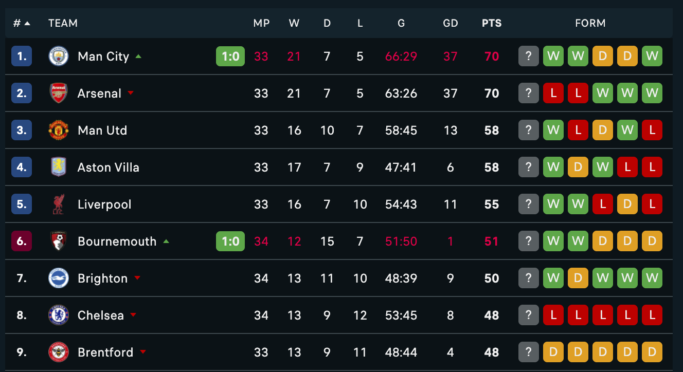 >>154328171It goes to Goals Scored at that point so Arsenal could still technically win if every remaining match ended in a draw