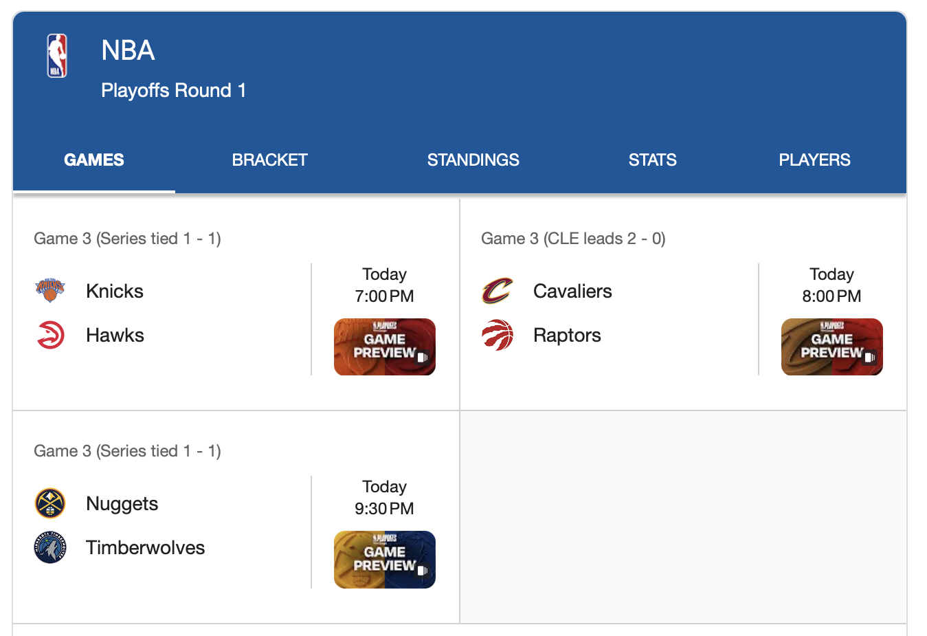 We split the ticket last night. That brings us to 7-10 for the playoffs. We're gonna even this shit up tonight. I feel a clean sweep. Let's smash those bookies.>Hawks +1.5Knicks were the absolute worst road ATS team this season at 15-26. Favorites coming off exactly a 1-point loss in the playoffs are 41-58-2 ATS in the following game since 2010. Home underdogs in Game 3 who just stole a road game to tie the series 1-1 are 22-14 ATS (61.1%) since 2012. Let's be safe and grab the point and a half.>Raptors +0.5 1st halfHome teams trailing 0-2 in a series are elite in the first half of Game 3, going 88-45-2 (66%). This series has looked more like a 1-8 seed matchup, and refs have helped that a lot. Raptors should come out with urgency in front of their home crowd tonight, getting a more favorable whistle than in Cleveland.>Nuggets -2.5This is a classic House of Disappointment spot for the Wolves. Minnesota was terrible ATS at home for the 3rd year in a row, going 18-23. Road favorites in the playoffs coming off a loss of more than 3 points are 23-9-1 ATS (72%). Jokic bounce-back game. Nuggets get the comfortable win here.Good luck, and don't bet what you don't have.