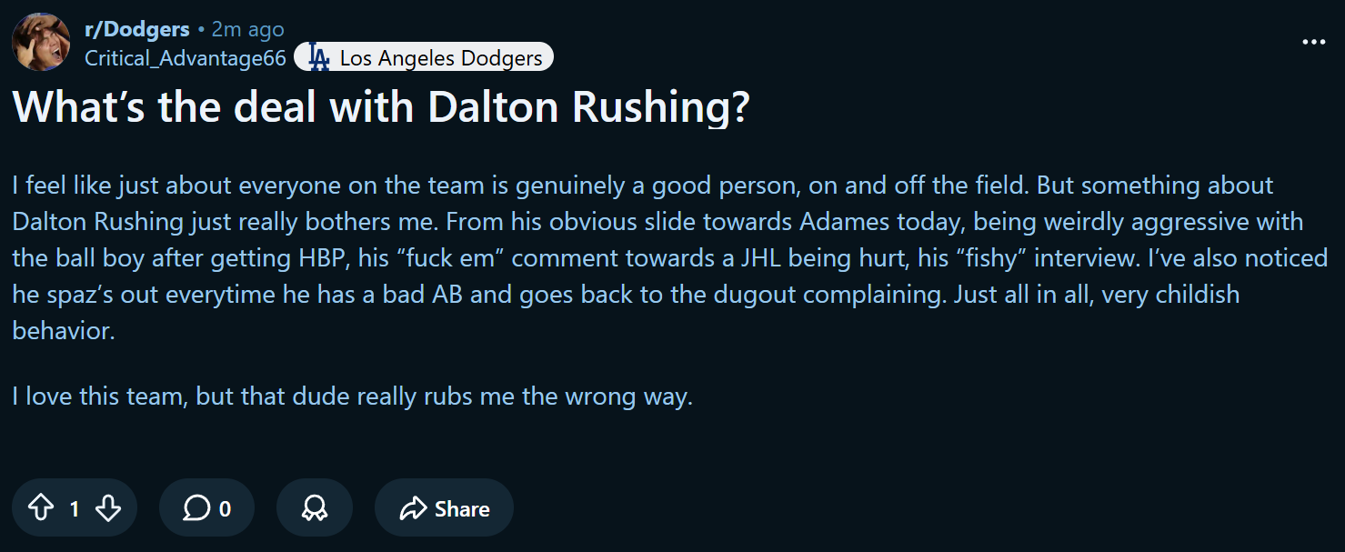looking back, rushing did nothing wrong. he just tagged him normally yesterday and went about his business back to the dugout. who cares about what he said?