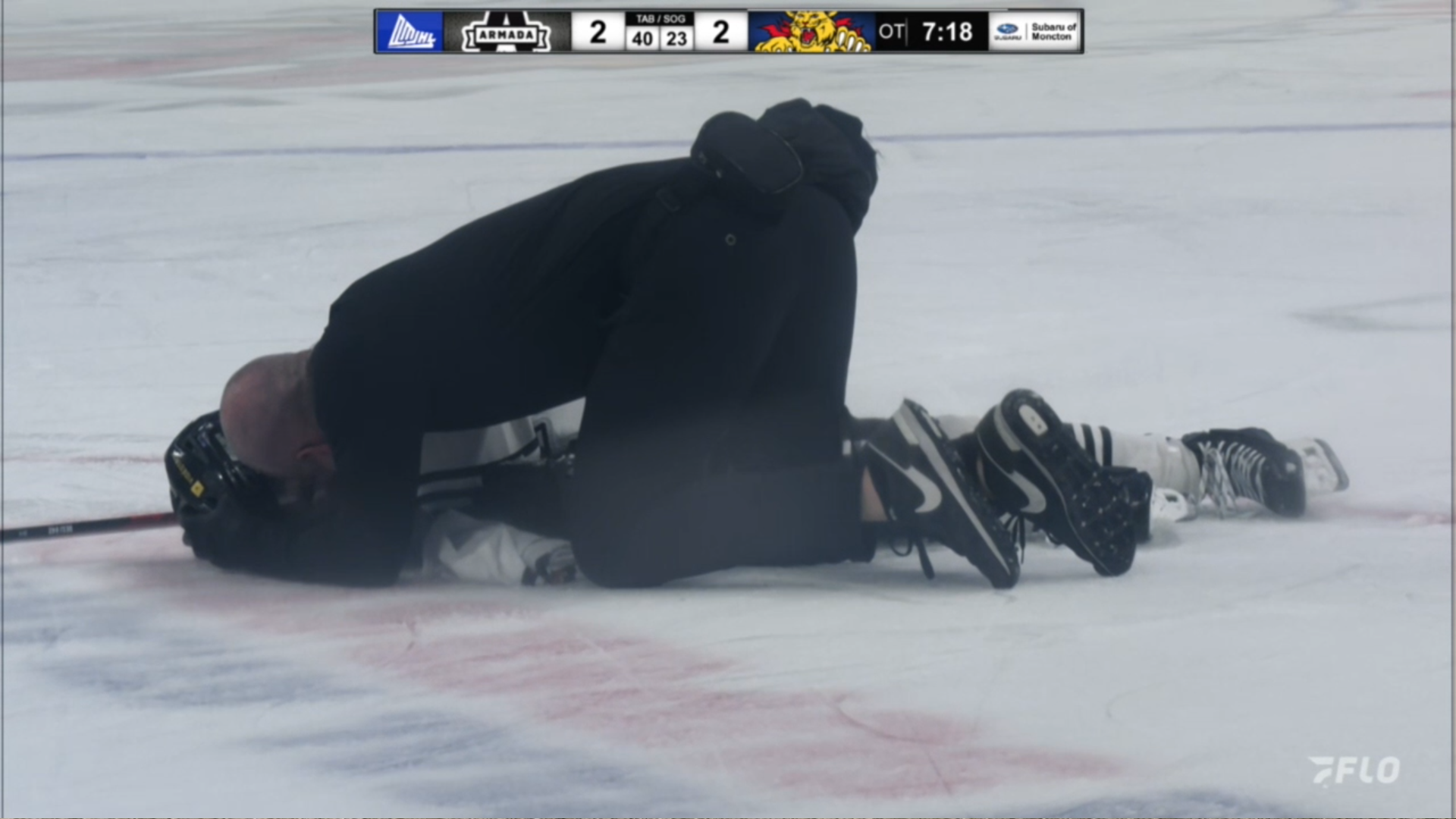 tkachuck trying to pass to the refs cause he knows they're on his team