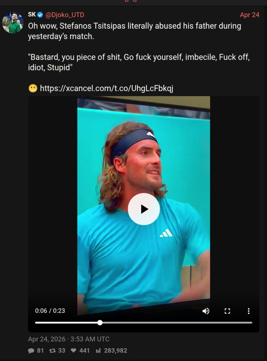 >>154367737Lingering on Tsitsipas' cringe levels.