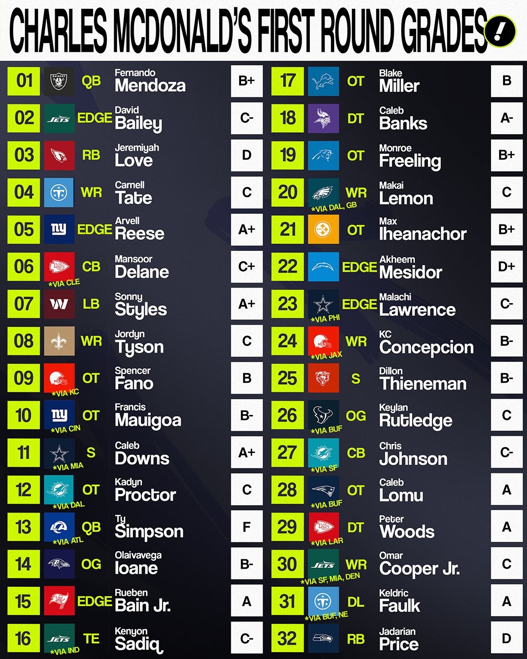 If I read one more “gotta build from da trenches dawg” on social media I’m gonna lose my mind, Baine is “da trenches” , let a “generational” player slip because you panic when the Giants picked Mauigoa.