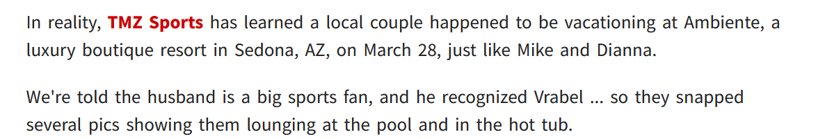 Breaking NewsThe first Mike and Dianna photos were not by a PI, just another couple on vacation and the husband recognized Vrabel.