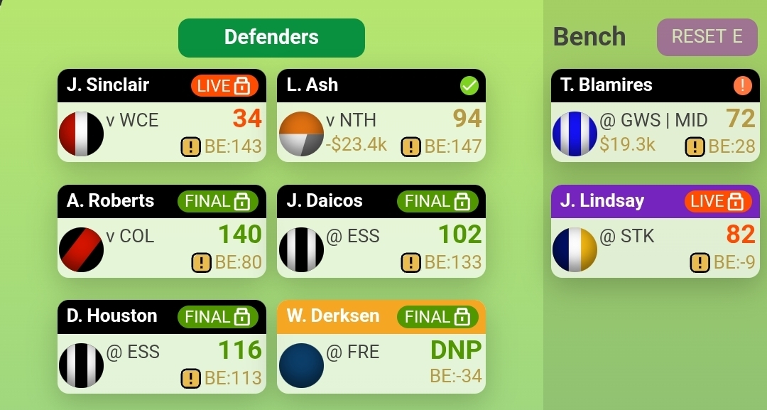 >>154384231I traded Jacques out this week to get Archie Roberts in. Might have been premature with some cash to still be made from Jacques but my defence is mostly done now with Roberts in. And ill take roberts 140 over Jacques 69 and some limited cash gen every day