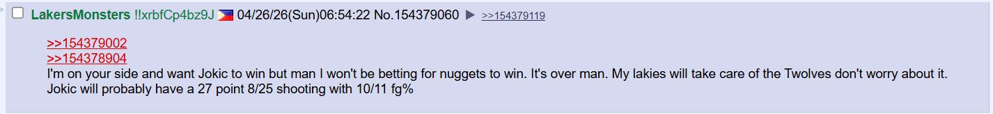 Jokic should hop on that cycle and take dat dere celltech. Luka is on now and were ready for the OKC. Lakers in 5 babyyy!