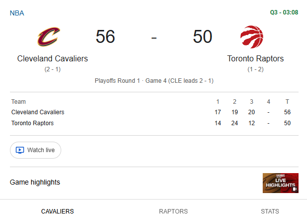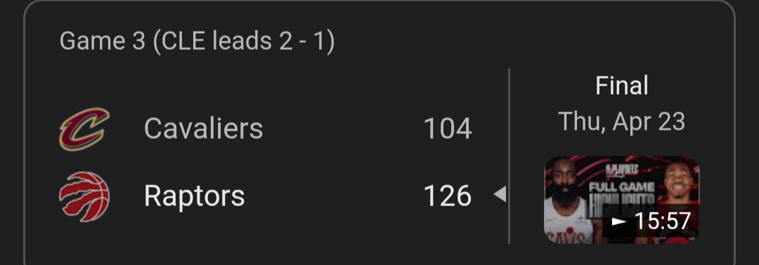Cavs 3 pt >5-27Raptors 3pt>3-26