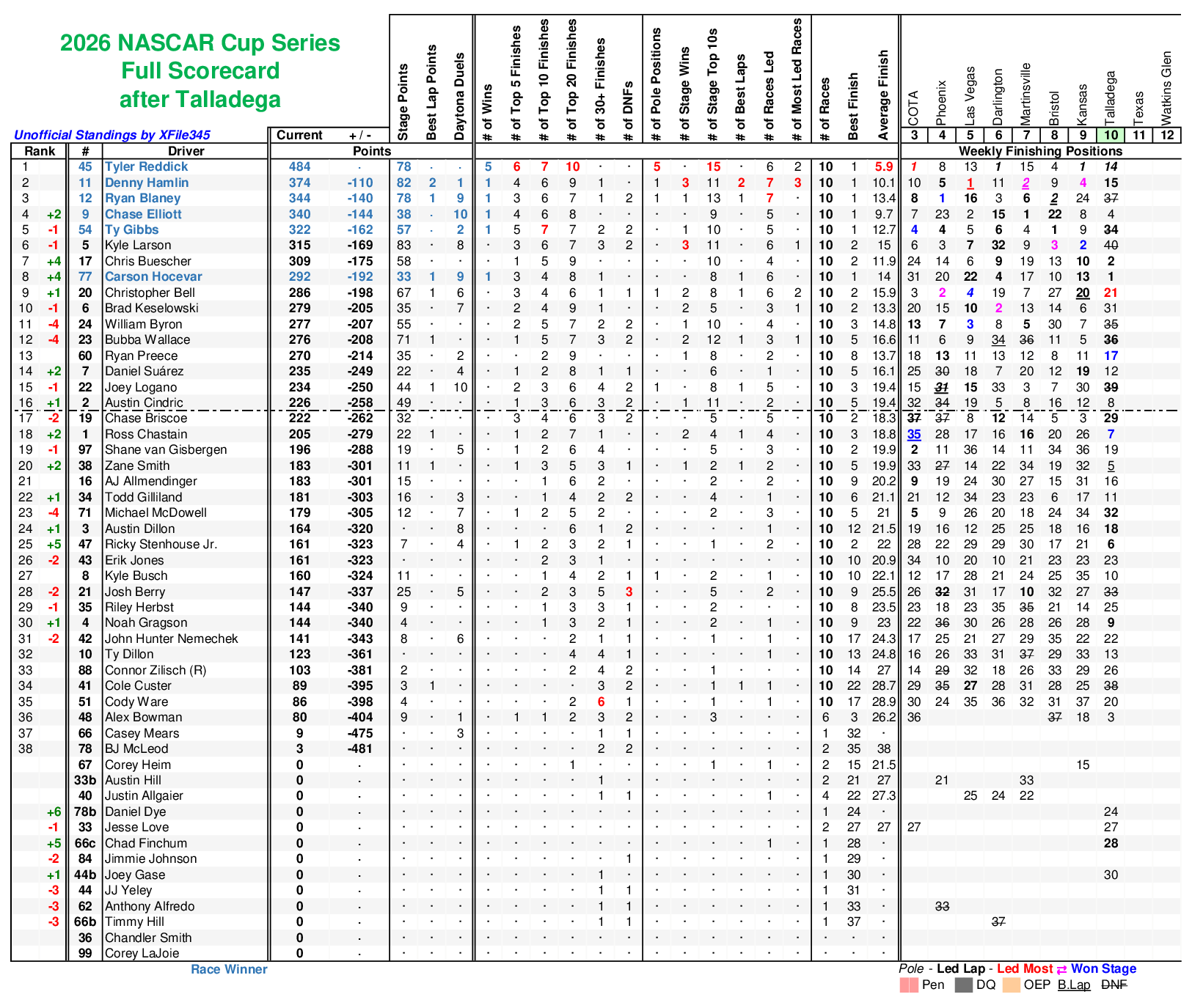 >>154395944>Reddick leading by a huge margin>Bubbles in 12thI see it's been a pretty shit season so far on par with norizz being in a position to make a run for the WDC