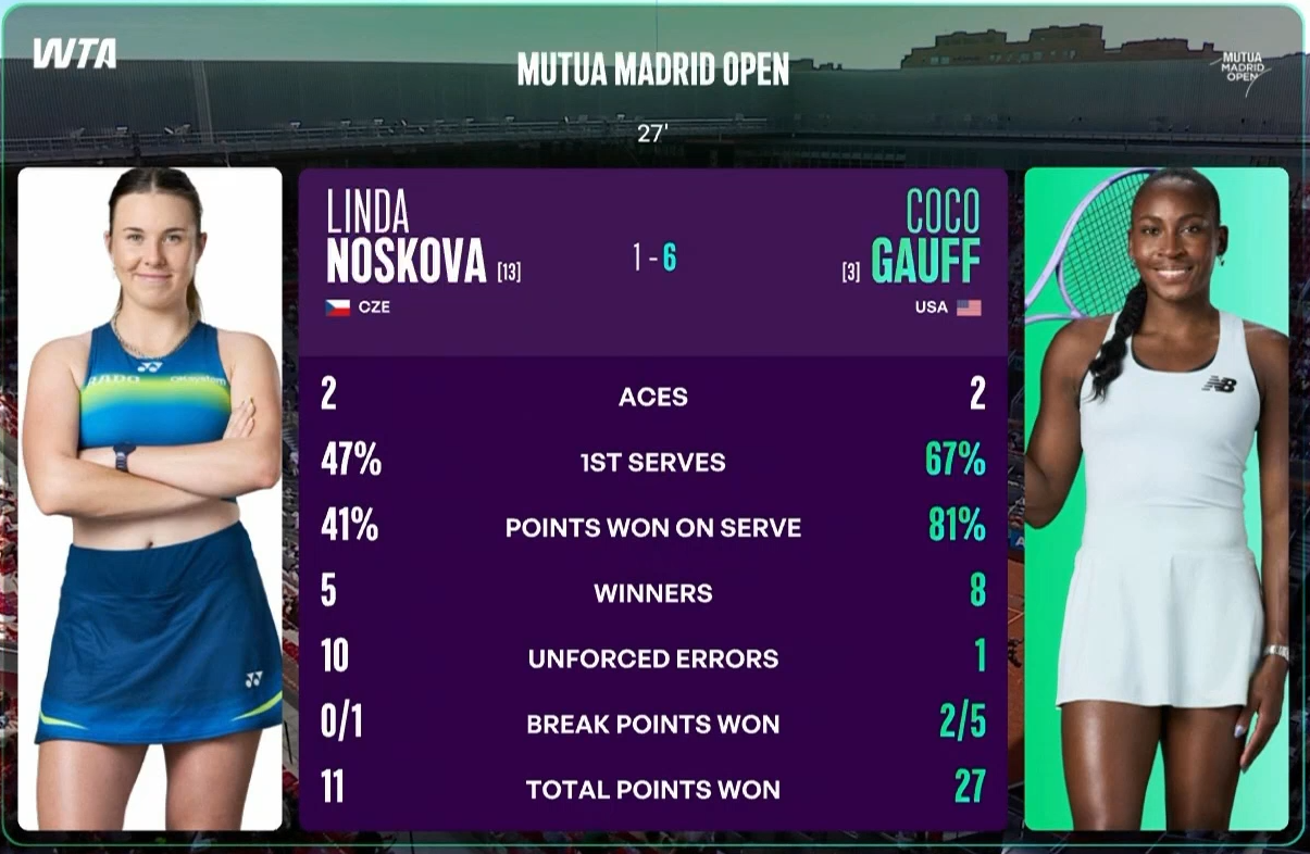 No break points on Qinwens serve yet