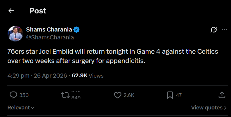 i was told embiid was a gamechanger