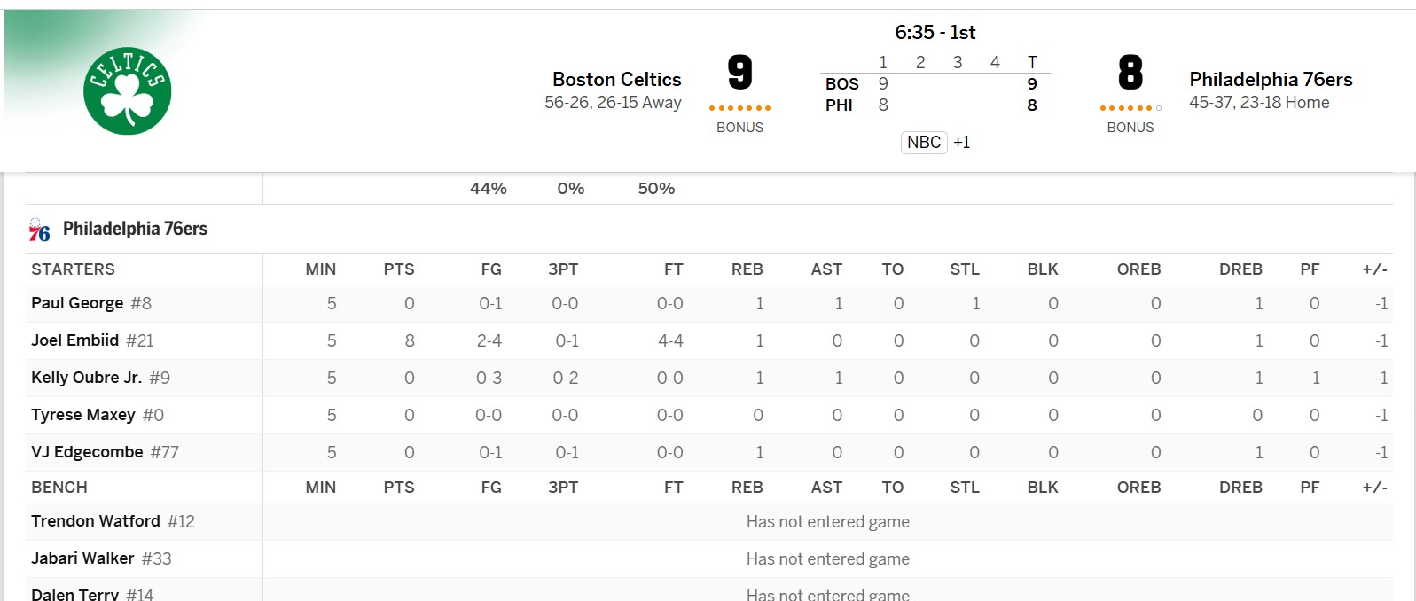 >>154396782Celtics are like 11 out of 28 for three pointers while Sixers are 3 out of 15.