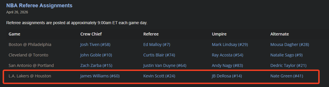 >>154397740https://www.basketball-reference.com/teams/LAL/2026_referees.html>lakers 6-0 with Williams as head ref and 3-3 with DeRosa this season
