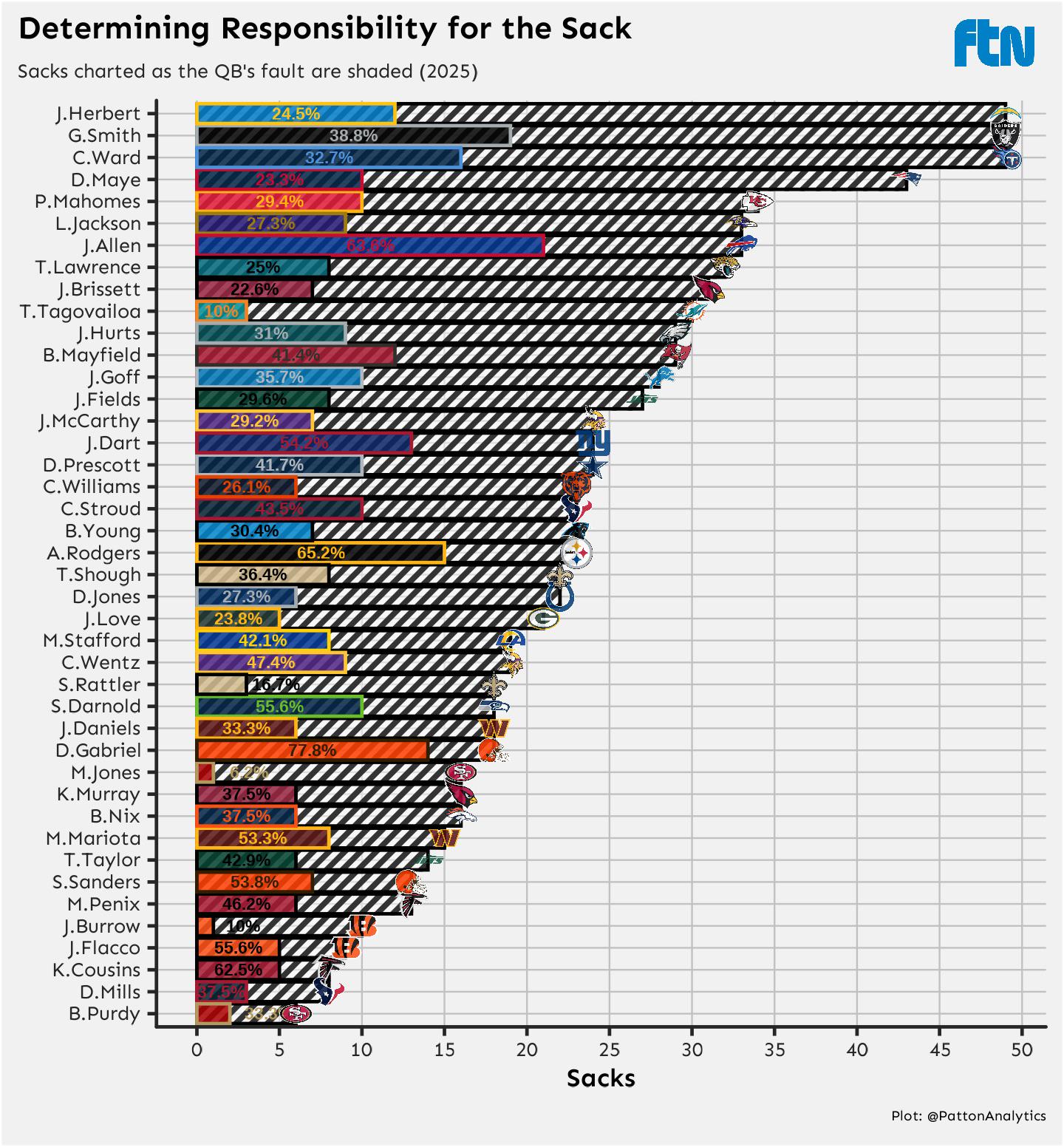 >>154400331How would you even determine this? There is so much going on during the pass rush that other than obvious shit like the QB running outside of a clean pocket and getting decked or the line being obliterated in 0.1 seconds after the snap it'd be very subjective and you'd have to analyze each sack on a case by case basis