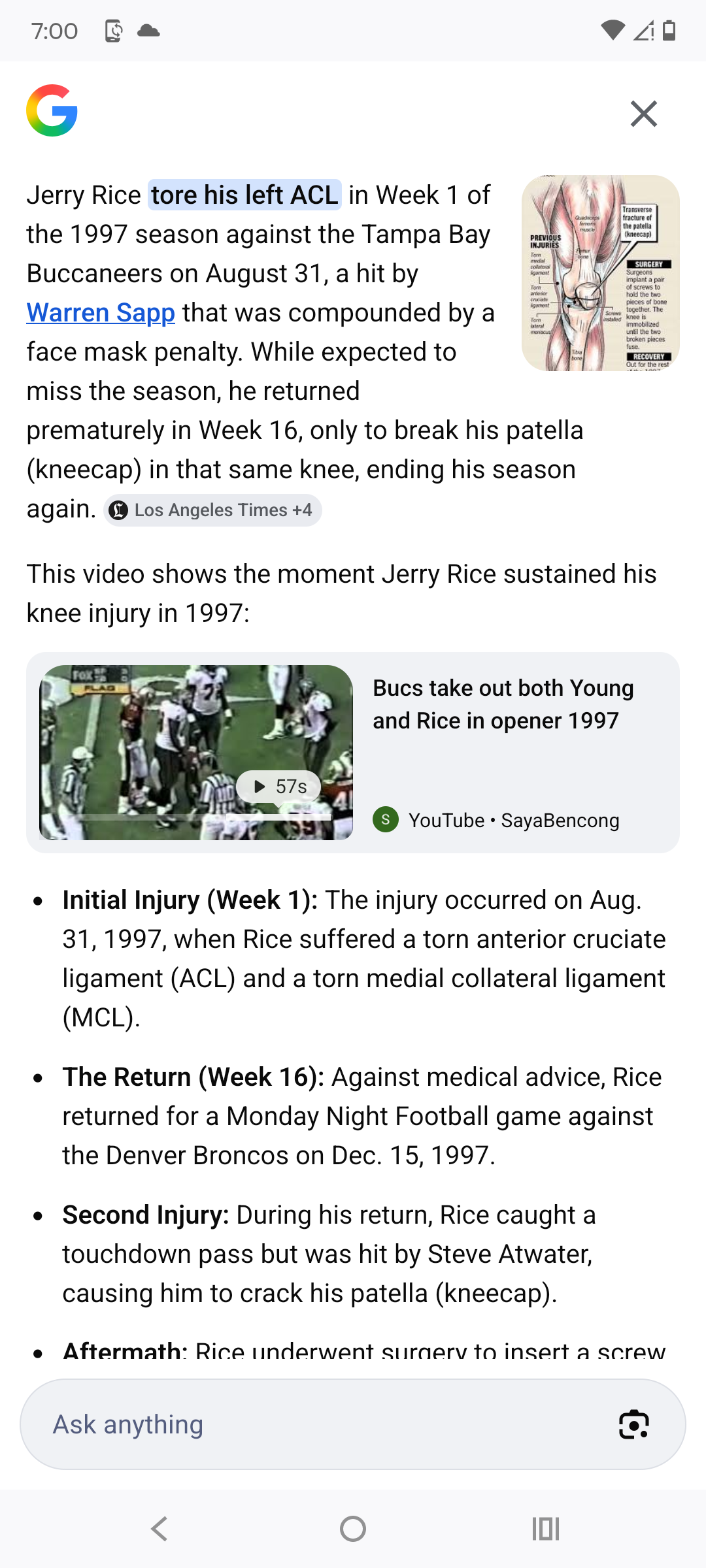 >>154405441Okay but that's Jerry Rice and Reek tore more than just his ACL.Anyone else do that or just the fucking GOAT?