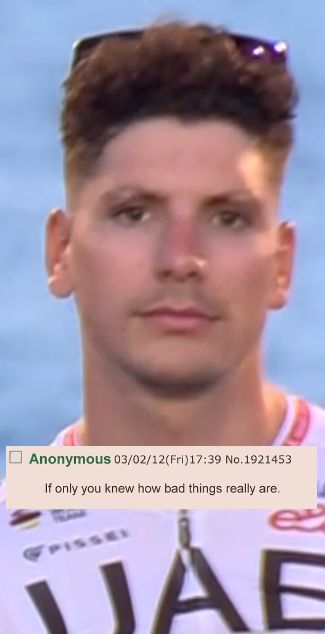 So I was thinking about this when watching LBL the other day. We have a few burgers in here so maybe they can confirm. But imagine living in some fucking hellish zero bike lanes, zero nature urban shithole where you drive from store to store in giant parking lots and then watching the rolling hills of spring europe, the brick houses, the small villages, the greenery, the history and the absolute soul. If you're american or some johnny foreigner third worlder watching cycling, it must be some kind of surreal SOVL overload I can't even begin to imagine.