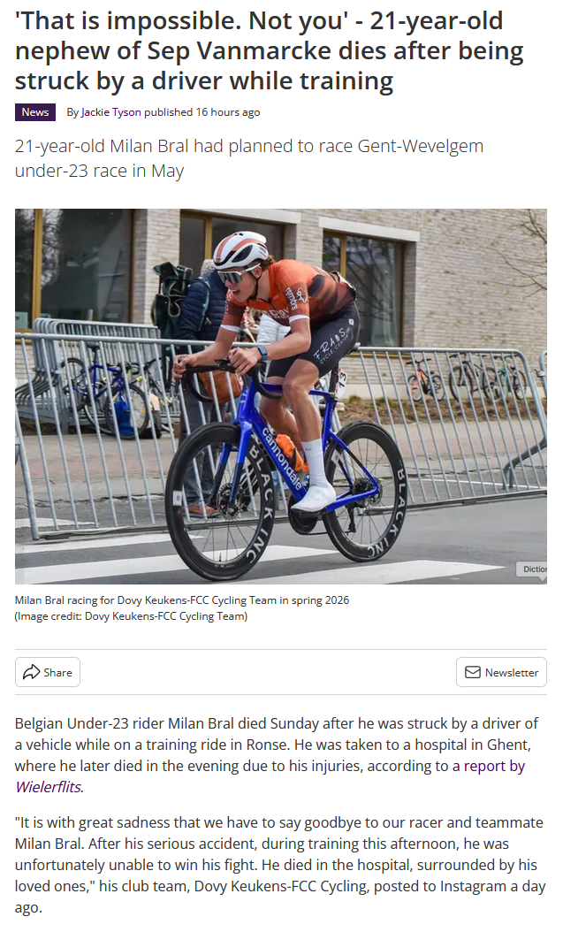 a glimpse of many battles to come edition >Current and upcoming road races26.04 - 03.05 Presidential Cycling Tour of Turkiye 2.Pro28.04 - 03.05 Tour de Romandie 2.UWT01.05 GP Immo Zone/Vloer-en chapewerken Smetryns 1.1 WE01.05 Eschborn-Frankfurt 1.UWT02.05 Festival Elsy Jacobs à Garnich 1.1 WE03.05 Lotto Famenne Ardenne Classic 1.103.05 Festival Elsy Jacobs à Luxembourg 1.1 WE 03.05 - 09.05 Vuelta España Femenina by Carrefour.es 2.WWT06.05 - 10.05 ΔΕΗ Tour of Hellas 2.108.05 - 31.05 Giro d'Italia 2.UWT08.05 La Classique Morbihan 1.1 WE09.05 Grand Prix du Morbihan Femmes 1.1 WE09.05 Grand Prix du Morbihan 1.Pro10.05 Tro-Bro Léon 1.Pro10.05 Trofee Maarten Wynants 1.1 WE10.05 - 14.05 Baku-Khankendi Azerbaijan Cycling race 2.113.05 Navarra Women's Elite Classic 1.Pro13.05 - 17.05 Flèche du Sud 2.113.05 - 17.05 Tour de Hongrie 2.Pro14.05 Lotto Circuit de Wallonie 1.1 ME15.05 - 17.05 Itzulia Women 2.WWT16.05 Tour du Finistère Pays de Quimper 1.116.05 Simac Omloop der Kempen Ladies 1.1 WE17.05 Rund um Köln 1.117.05 Boucles de l'Aulne - Châteaulin 1.119.05 Classique Dunkerque / Grand prix des Hauts de France 1.Pro19.05 Durango Durango Emakumeen Saria 1.1 WE20.05 - 24.05 4 Jours de Dunkerque / Grand Prix des Hauts de France 2.Pro21.05 - 24.05 Vuelta a Burgos Feminas 2.WWT>Mecha-Rusbert's webm folders:https://pastebin.com/Mx1GyU53 >Bert van Koers' ciclismo quizzes:https://www.sporcle.com/user/Bert_van_Koers/quizzes/>Races info:https://www.procyclingstats.com/https://firstcycling.com/>Free streams:https://cyclingtiz.live/https://dlhd.dad/>Velodrama league code:51196855Previous thread:>>154385693