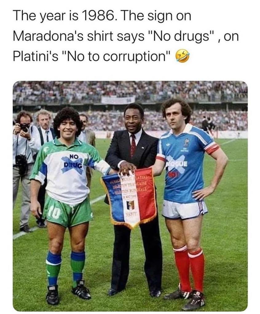 >>154415922> Can clearly see Platini's shirt also says No Drugs but in French