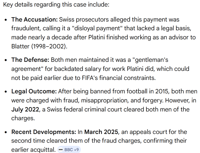 >>154416431yes because it was shady and was used as potention corruption, which isn't. but that was enough to remove him from the fifa election, and that put infantino, blatter's protégé in charge of fifa.