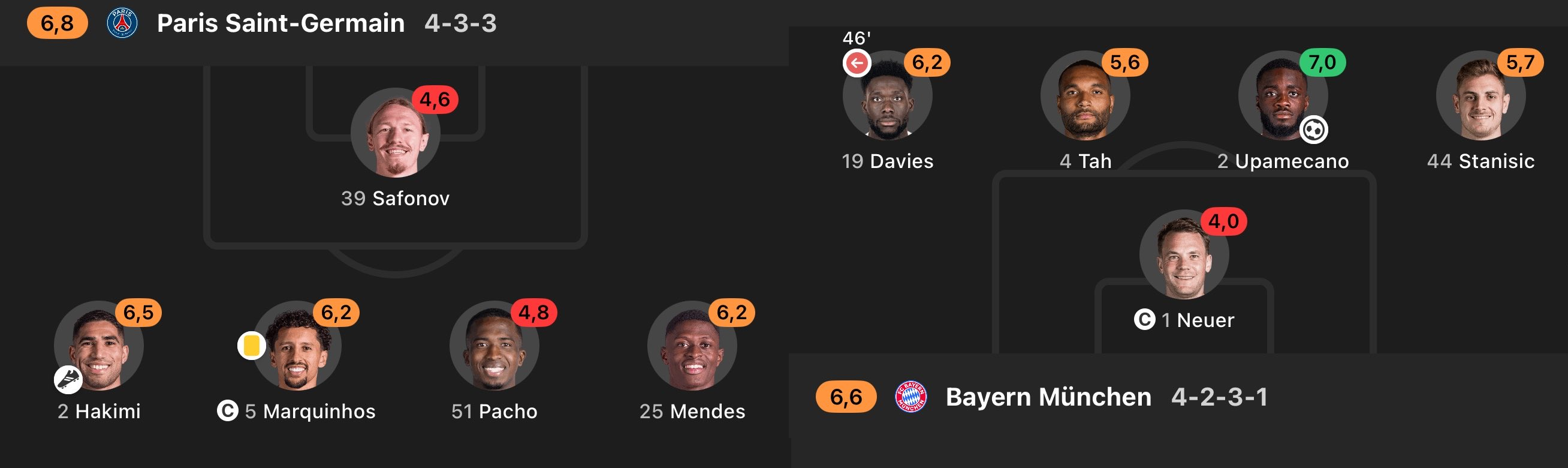 and upamecano redeemed himself only by licking the ball once, he wouldn't be in the greens either