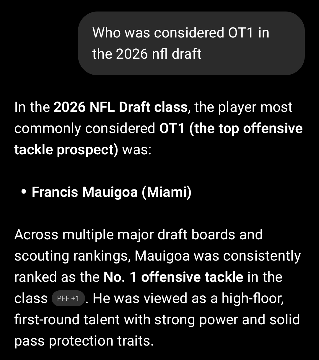 I didn't see a dominant pass rusher watching Arvell Reese in college. I saw an off ball linebacker surrounded by talent and coached by a Superbowl winning DC. If he's great in the NFL cool but he's a much bigger projection than people are saying if they expect a 10+ sack 3-4 LB and if he's an off ball LB I simply think the value isn't the same as a dominant Safety