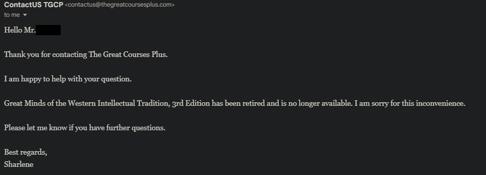first of all bumpsecond of all they now have a subscription plan on TGC that's pretty affordable if you just want to watch these lectures without hassles.third of all they "retired" this course for some retarded reason so i'm trying to get it,. great minds of the western intellectual tradition 3rd edition i've looked for the video version a lot and can't find it anywhere.