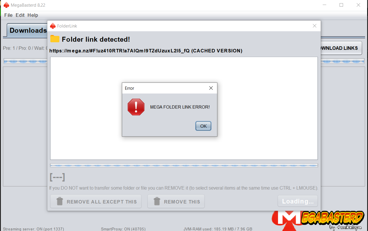 >I tried on several occasions but MegaBasterd keeps giving me an error link message back